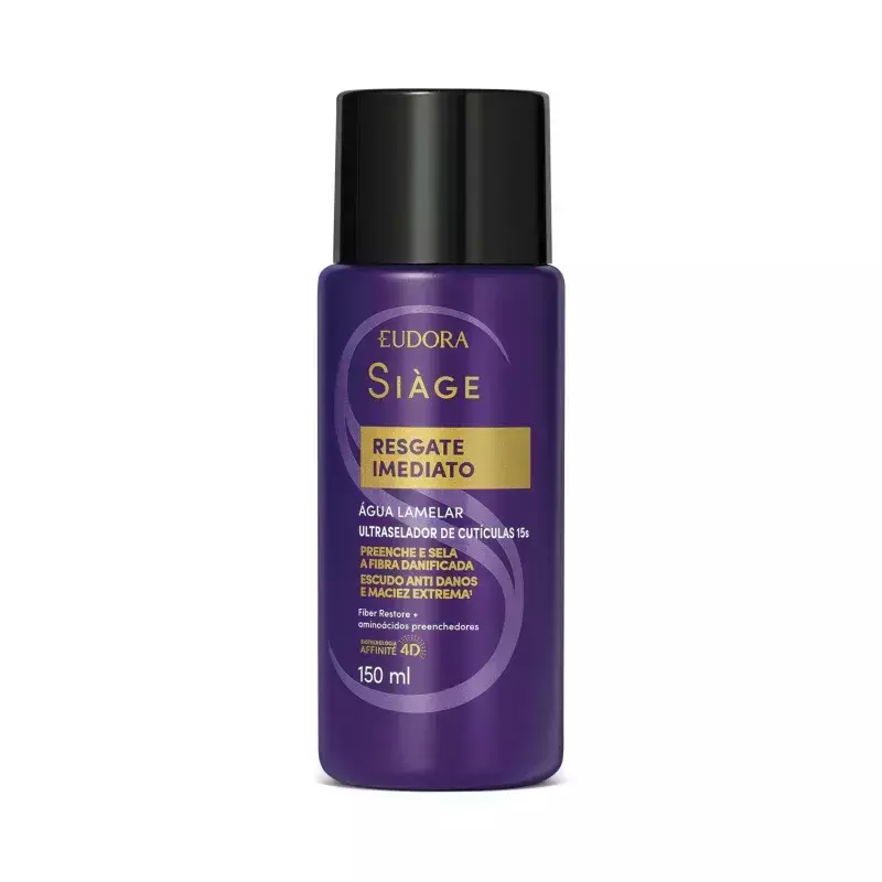 Cabelo poroso e quebradiço, com um dano profundo? A Água Lamelar Siàge Resgate Imediato restaura os fios danificados, preenche a fibra danificada e forma um escudo protetor que evita danos futuros: fios mais fortes desde o 1º uso.